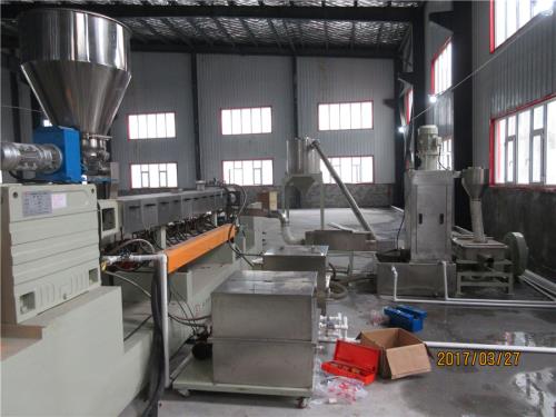 一、系統(tǒng)機(jī)組技術(shù)參數(shù)Ⅰ、機(jī)器顏色:主機(jī)為公司標(biāo)色;電柜為電腦色Ⅱ、造粒工藝:雙螺桿計量式喂料——-JDL-75D雙螺桿擠出機(jī)---—液壓板式換網(wǎng)器——拉條機(jī)頭----6米不銹鋼水槽-----吹干機(jī)----龍門切粒機(jī)-----2.5米不銹鋼振動篩-------1立方產(chǎn)品料倉------主機(jī)采用:PLC控制Ⅲ、作業(yè)物料:PE改性料 產(chǎn) 量:450-650公斤/小時(作業(yè)條件不同,產(chǎn)量稍有不同)客戶為何購買我們設(shè)備,我們價位在行業(yè)屬于中低價格,我們設(shè)備能給客戶帶來哪里利益,我們設(shè)備能給用戶帶來以下利益:雙螺桿造粒機(jī)_雙螺桿塑料造粒機(jī)
