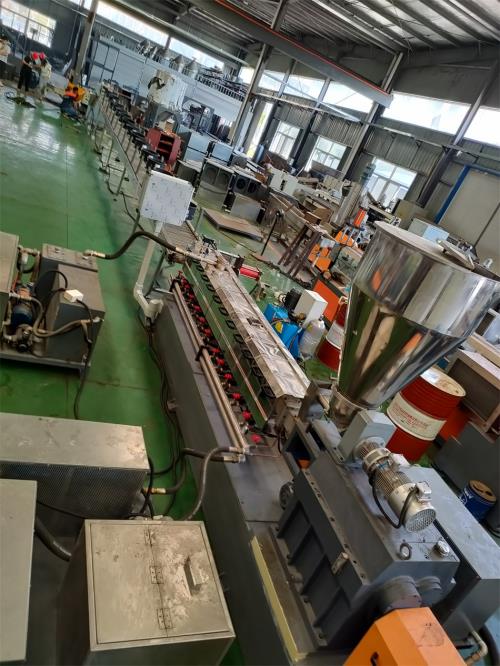 雙螺桿造粒機(jī)1.最大好處:整套0水排放;無(wú)水污染;環(huán)保好過(guò)2.雙螺桿齒輪箱冷卻采用:采用環(huán)保冷卻系統(tǒng)(環(huán)保型:發(fā)明專利號(hào):CN201911312134.6)不需要接外循環(huán)水冷卻,不用徘外水;采用閉環(huán)循環(huán)系統(tǒng),不用擔(dān)心長(zhǎng)時(shí)間使用水冷卻會(huì)產(chǎn)生水垢把冷卻器堵住,導(dǎo)致齒輪箱損壞3.雙螺桿主機(jī)水箱冷卻系統(tǒng)采用:采用環(huán)保冷卻系統(tǒng)(環(huán)保型:發(fā)明專利號(hào):CN201911312134.6)不需要接外循環(huán)水冷卻,不用徘外水;采用閉環(huán)循環(huán)系統(tǒng)4. 不銹鋼水槽:一臺(tái),L=6米,加寬加深,槽體為不銹鋼材質(zhì);水槽與吸干機(jī)過(guò)度體一件;不銹鋼材質(zhì),水槽熱水經(jīng)過(guò)濾器到環(huán)保型冷卻器;水槽架里安裝:雙螺桿造粒機(jī)4組環(huán)保風(fēng)冷卻系統(tǒng)(環(huán)保型:發(fā)明專利號(hào):2020107265672)不需要接外循環(huán)水冷卻,不用徘外水;采用閉環(huán)循環(huán)系統(tǒng);5.節(jié)能:普通筒體筒體冷卻;例如:第5區(qū)溫度超高;這是電子閥導(dǎo)通;第5區(qū)冷卻回水就會(huì)影響第六區(qū)和第四區(qū)的溫度下降;就會(huì)導(dǎo)致第四六區(qū)加溫;這種情況會(huì)一直循環(huán)出現(xiàn);導(dǎo)致電費(fèi)浪費(fèi);我們現(xiàn)在采用環(huán)保型就徹底解決這個(gè)問(wèn)題;我們?cè)O(shè)備比同類設(shè)備節(jié)能:10-15%電費(fèi)6.減少投資款:雙螺桿造粒機(jī)水池及冷卻塔成本:水池尺寸及成本:1.3米*3米*2.5米冷卻水池;大概成本:3萬(wàn)左右, 60立方冷卻水塔及2.2KW高壓水泵2臺(tái)及管道,2天水管施工:大概成本:3萬(wàn) 能減少固定投資大概:6萬(wàn)元左右